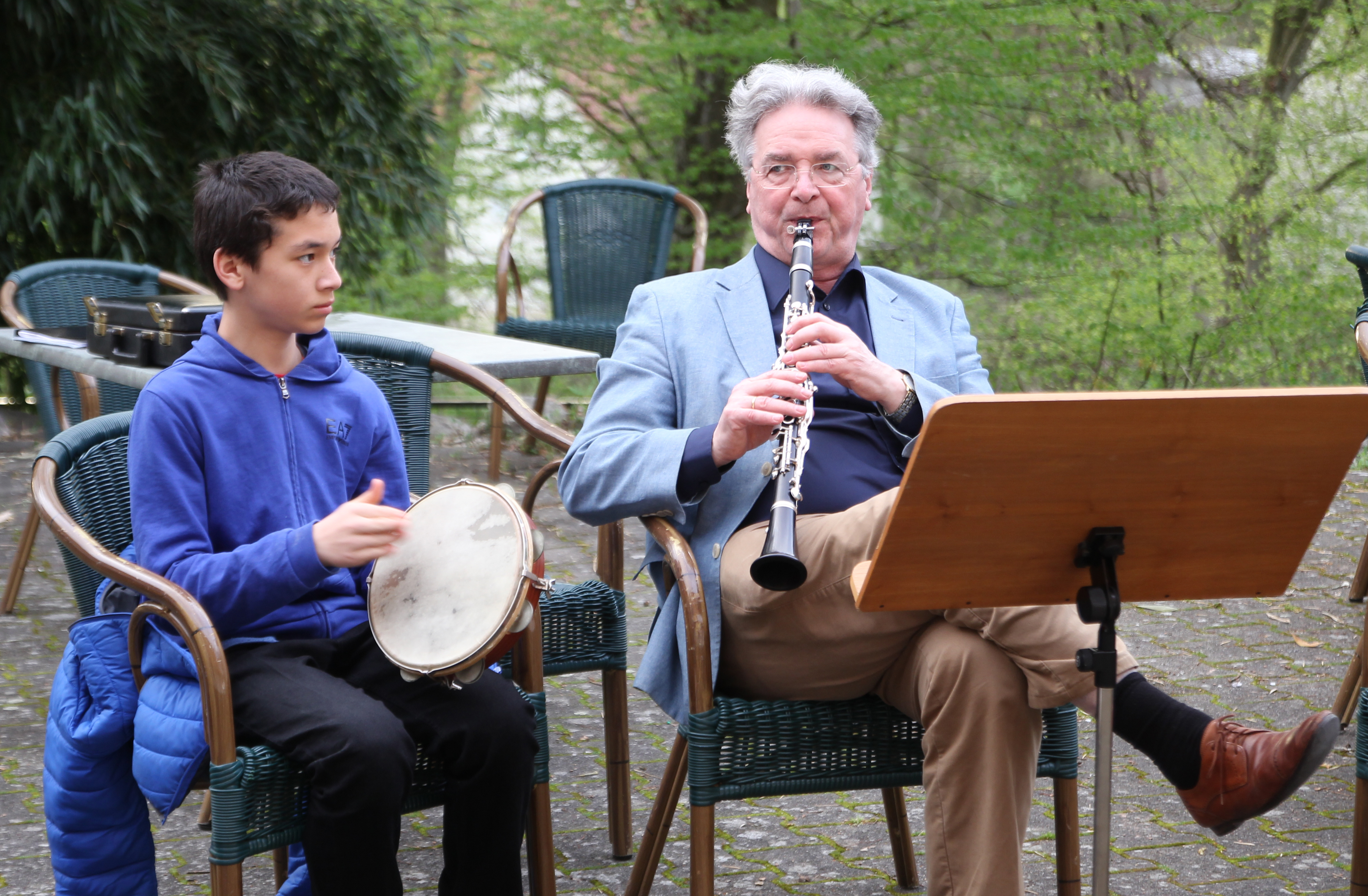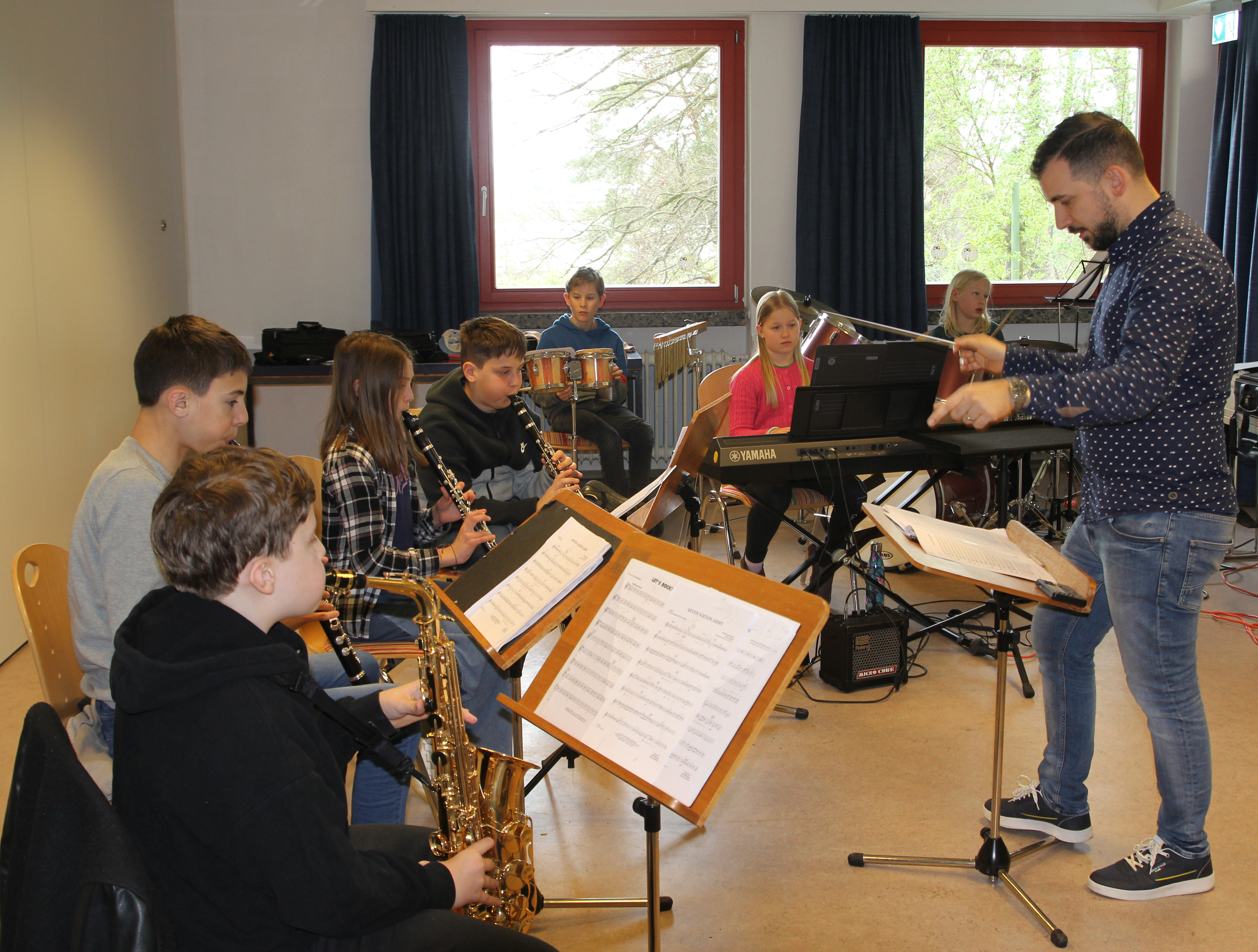 Zwei Busse mit 70 Schülerinnen und Schülern an Bord und ein mit Instrumenten vollgepackter Anhänger brachte uns zum Schullandheim nach Biberach, das wir dann fünf Tage lang fast für uns allein hatten. Das war auch gut so, da zeitweise sieben Ensembles von morgens bis abends parallel probten. Gleich nach dem Frühstück begann jeden Tag die intensive Arbeit in den einzelnen Gruppen: Theater, Registerproben, Jugendchor, großer Chor, Juniorband. Ab Mittag wurden einzelne Szenen des Stückes mit allen Beteiligten zusammengefügt. Abends übten wir dann noch gezielt an den Stellen, die nicht so gut geklappt hatten.