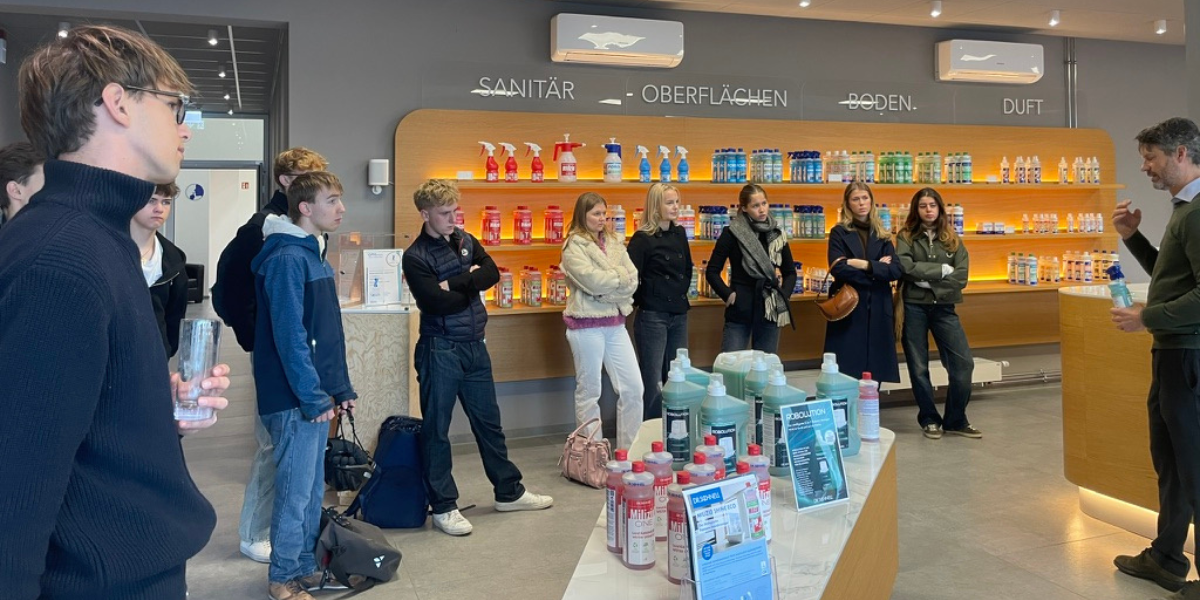 Am 13. November 2025 besuchte unser Kurs im Fach Wirtschaft und Recht (eA) das Münchner Familienunternehmen DR. SCHNELL, das seit Jahrzehnten für innovative und nachhaltige Reinigungsmittel steht. Ziel unseres Ausflugs war es, Einblicke in Unternehmensgründung und -aufbau, moderne Lieferketten sowie aktuelle Herausforderungen der Unternehmensführung zu gewinnen.