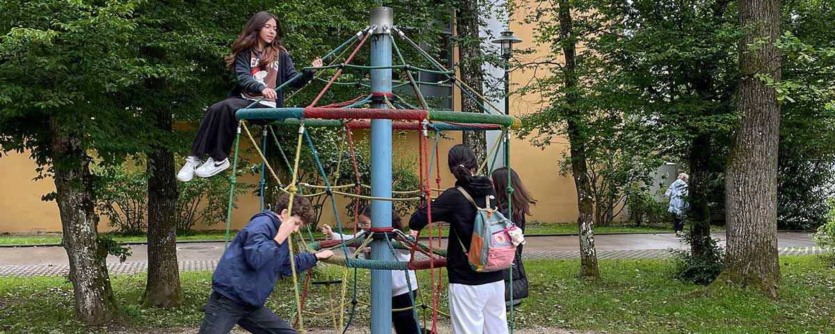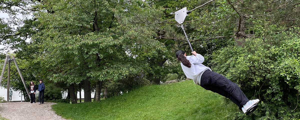 Burgen gibt es nicht nur am Rhein, sondern auch an der Isar! Und zwar in Grünwald! Da ein Großteil unserer Klasse dort noch nicht war, also das ideale Ziel für den museumspädagogischen Tag unserer Schule. Auf dem Weg zur Burg machten wir zuerst noch Halt am Grünwalder Freizeitpark für den sportlichen Programmteil des Tages: Klettergerüst, Karussell und Flying Fox.