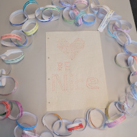 And here is where our project comes in: At the beginning of November, Advanced English 6 created “Circles of Kindness” for their classroom!