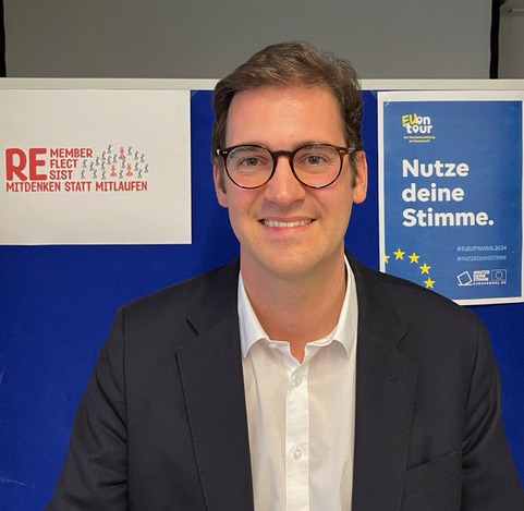 Die Europawahl 2024 steht im Juni vor der Tür und in der Bundesrepublik dürfen zum ersten Mal alle Bürgerinnen und Bürger ab 16 Jahren ihre Stimme abgeben. Zu diesem Anlass hat der Abgeordnete des Deutschen Bundestages Stephan Pilsinger am 4. März die Nymphenburger Schulen besucht. Pilsinger vertritt seit 2017 für die CSU als Direktkandidat den Wahlkreis München West-Mitte und ist zudem ehemaliger Schüler unserer Schule.
