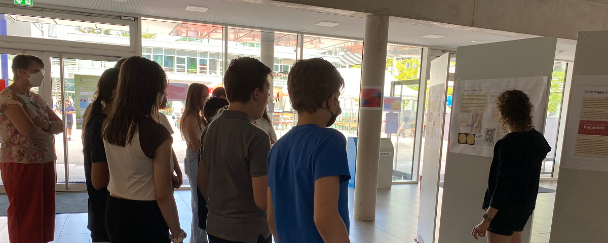 Beim Nymphenburger Sommerfest 2022 hatte sogar Dracula einen großen Auftritt – im Rahmen dieses Festes konnten wir, die Klasse 8R, unsere Kreativbeiträge zum Wettbewerb „Die Deutschen und ihre östlichen Nachbarn“ vorstellen. Wir hatten Plakate zum diesjährigen Schwerpunktland Rumänien erstellt und gestalteten damit eine Kabinettausstellung zu Land und Leuten. Bram Stoker und seine literarische Figur durften dabei natürlich nicht fehlen.