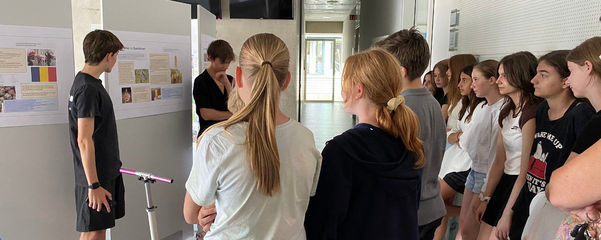 Zusammen mit unserer Partnerschule in Tamaseu versuchten wir im Rahmen eines mehrwöchigen Projektes den Gemeinsamkeiten unserer beiden Länder auf die Spur zu kommen. Mit der Klasse 7 und 8 der Scoala gimnaziala Nr. 1 tauschten wir uns – auf Englisch – aus und nutzten dazu die europäische Erasmus-Plattform Twinspace/E-Twinning. Dabei ging es sowohl um die römischen Ursprünge in Deutschland und Rumänien als auch um die Donau, gemeinsame Feste und einen Vergleich zwischen Alpen und Karpaten. Während die rumänischen Kinder sich vor allem für den FC Bayern und das Oktoberfest interessierten, wurde bei uns die größte Neugier durch die Region Transsylvanien und ihren berühmt-berüchtigten Vampir geweckt.