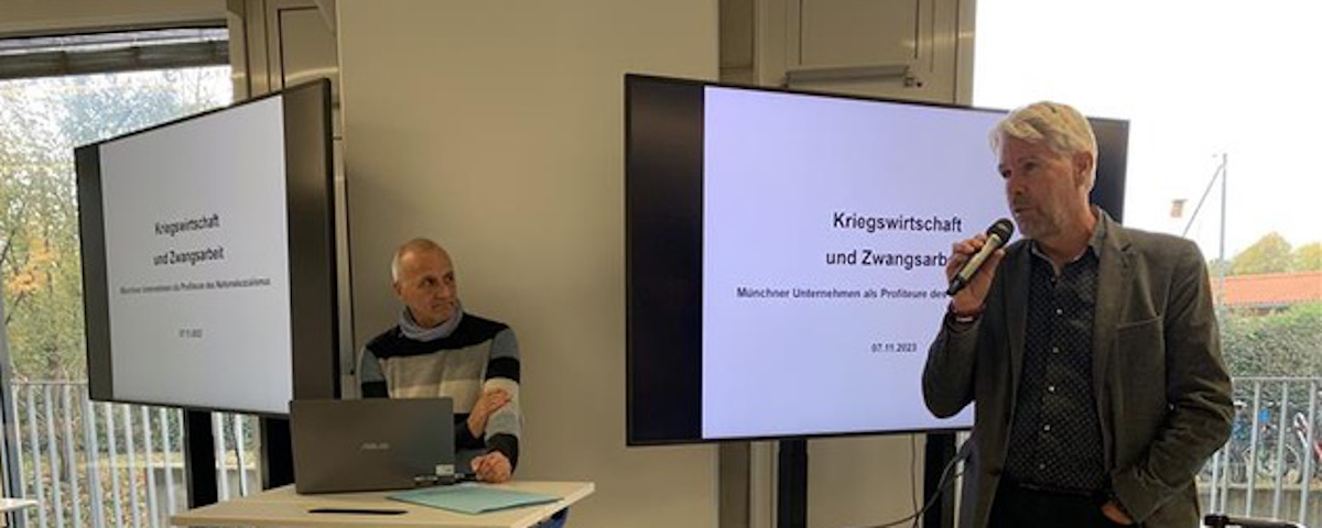 Im Mittelpunkt stand dabei eine Entdeckung, die jüngst von SchülerInnen in einem schulinternen Geschichtsprojekt offengelegt wurde: Auf dem heutigen Gelände der Nymphenburger Schulen an der Sadelerstraße befanden sich in der Zeit des Nationalsozialismus die Unterkünfte von Zwangsarbeitern.