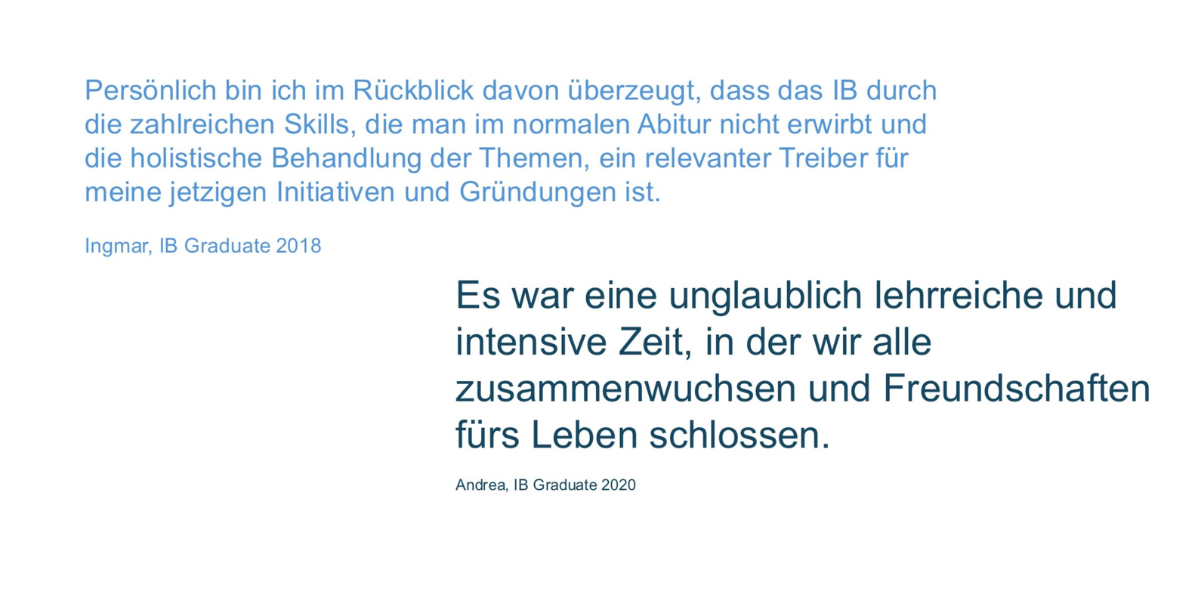 Ein besonderes Alleinstellungsmerkmal der Nymphenburger Schulen wurde an diesem Abend ebenfalls deutlich: Sie gehört zu den wenigen Schulen, an denen parallel zum bayerischen Abitur auch das IB Diploma erworben werden kann. Diese Doppelqualifikation eröffnet den SchülerInnen zusätzliche Wege – sowohl im deutschen Hochschulsystem als auch international. IB- und AbiturabsolventInnen verbessern ihre Chancen, an renommierten Universitäten im In- und Ausland angenommen zu werden, da das IBDP weltweit bekannt und anerkannt ist.