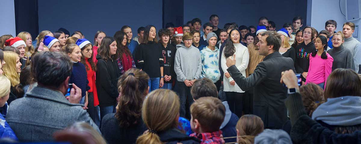 Zusätzlich für weihnachtliche Stimmung sorgte das vielfältige Musikprogramm, das im Musikcafé von Solisten und Ensembles gestaltet wurde. Weihnachtslieder zum Mitsingen präsentierte der Chor der Unter- und Mittelstufe.